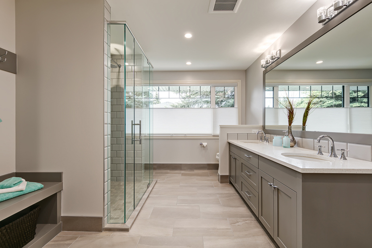 I was asked to help this family in Varsity Estates as they needed to renovate and update their master bathroom suite and create a new children's bathroom from a guest bedroom that was not needed. We installed dual sinks so they each have their own space and an area for each sibling either side of the shower to hang their towels and put away their laundry in the basket below. Even Grover their wonderful dog was thought of in this renovation designing a dog shower in the laundry/mudroom and a cabinet adjacent for his dog food and all other accessories. Every little detail thought of and discussed.